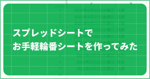 みなさんこんにちは!エンジニアの藤井( @touyou_dev )です! 今回は現在実際に使っている、スプレッドシートで作った輪番シートの作り方についてご紹介します。 実際得られる結果はこちら この画像だけだと何のことやらという感じかもしれませんが、これ…