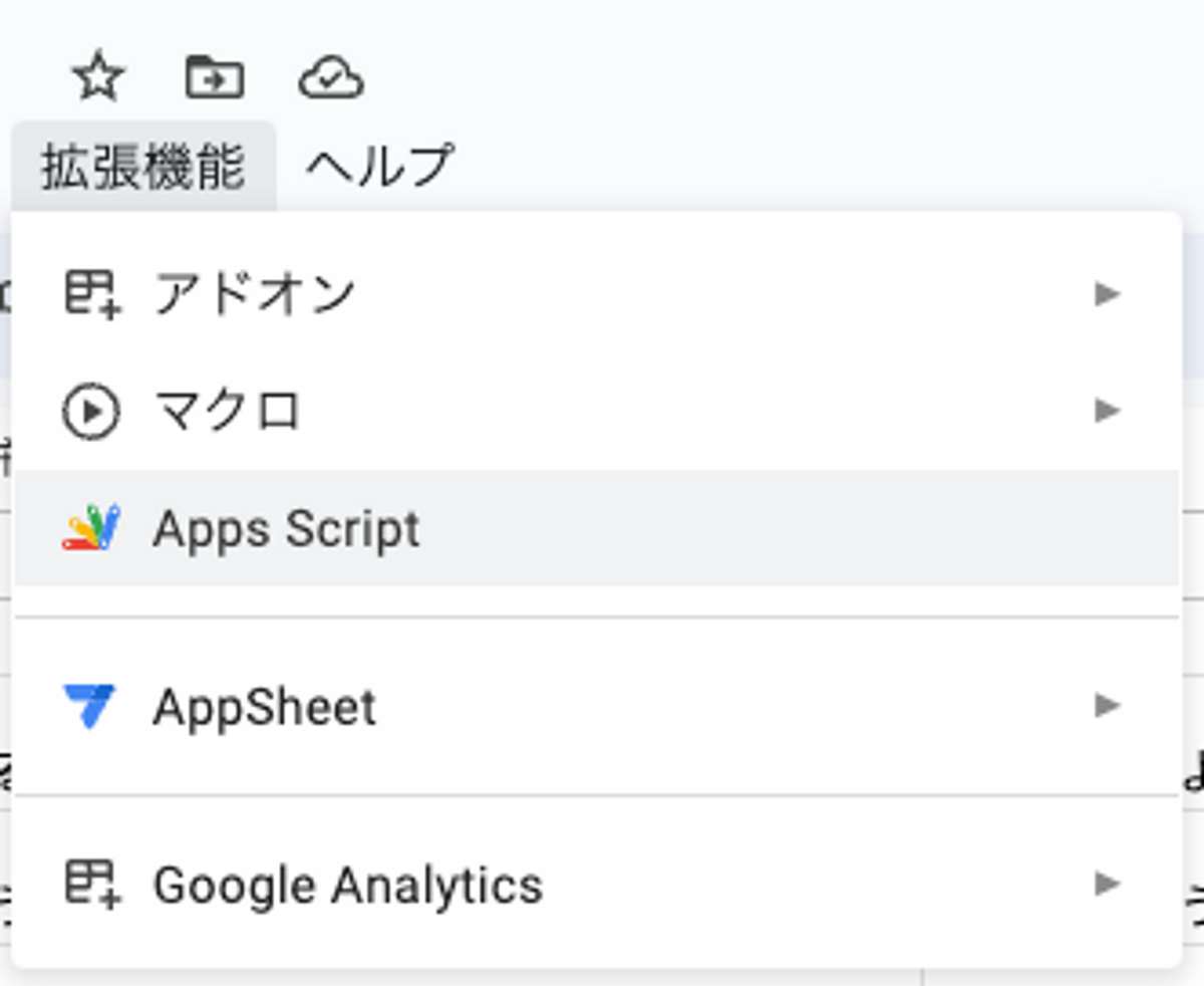 公式では、pythonのスクリプトを叩いてフォーマットをするということも書いているのですが、スプレッドシートで管理しているので、Apps Scriptで書いてみました。Apps Scriptは以下から作成できます。